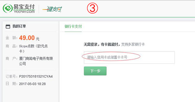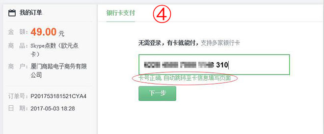 如何在PC端使用银行卡快捷支付给Skype充值(无需开通网银)